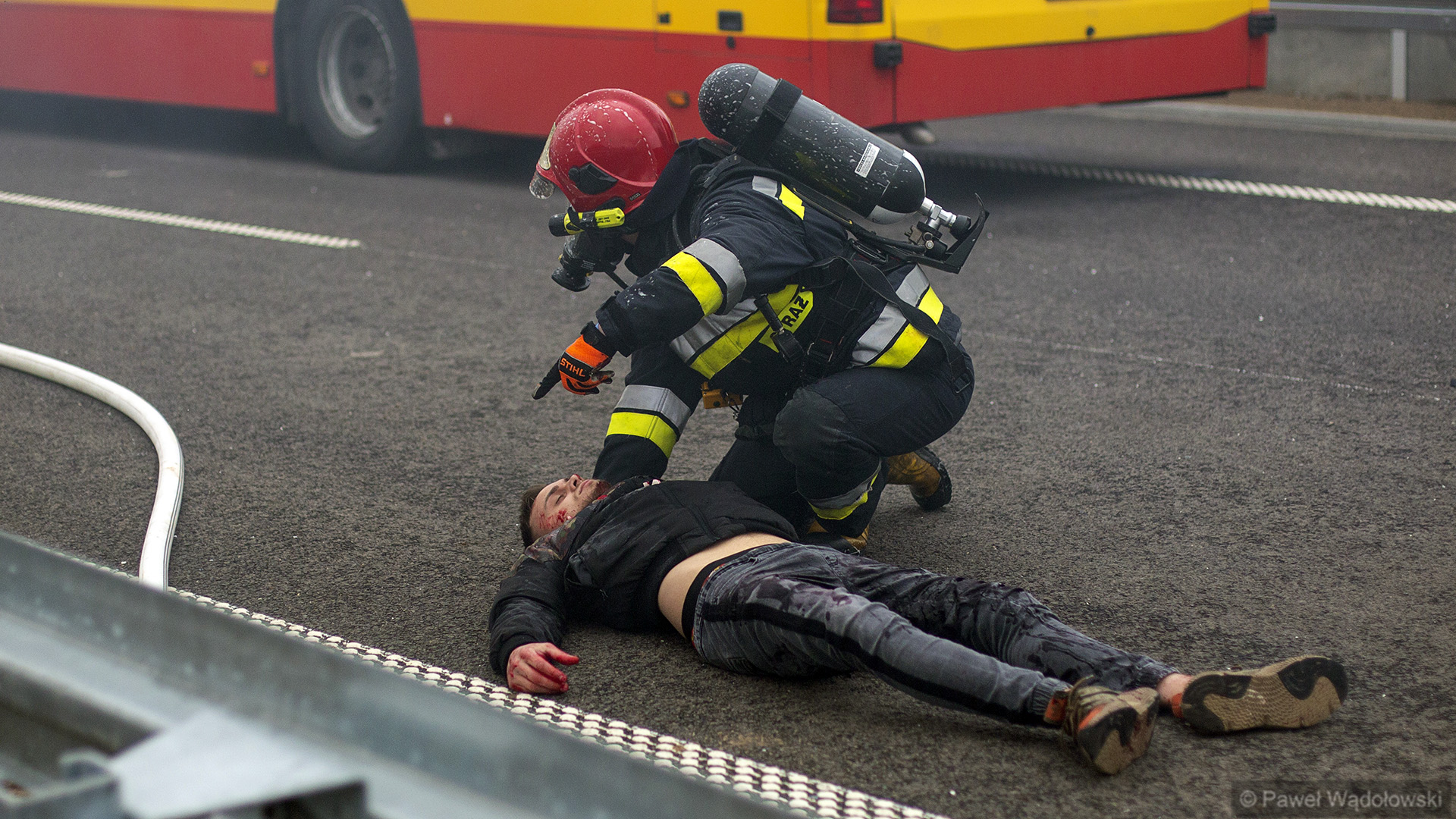 Na nieotwartym dla ruchu odcinku drogi wszystkie służby ratownicze wzięły udział w pozoracji, która zakładała, że doszło do katastrofy w ruchu lądowym, w której rannych zostało kilkadziesiąt osób.