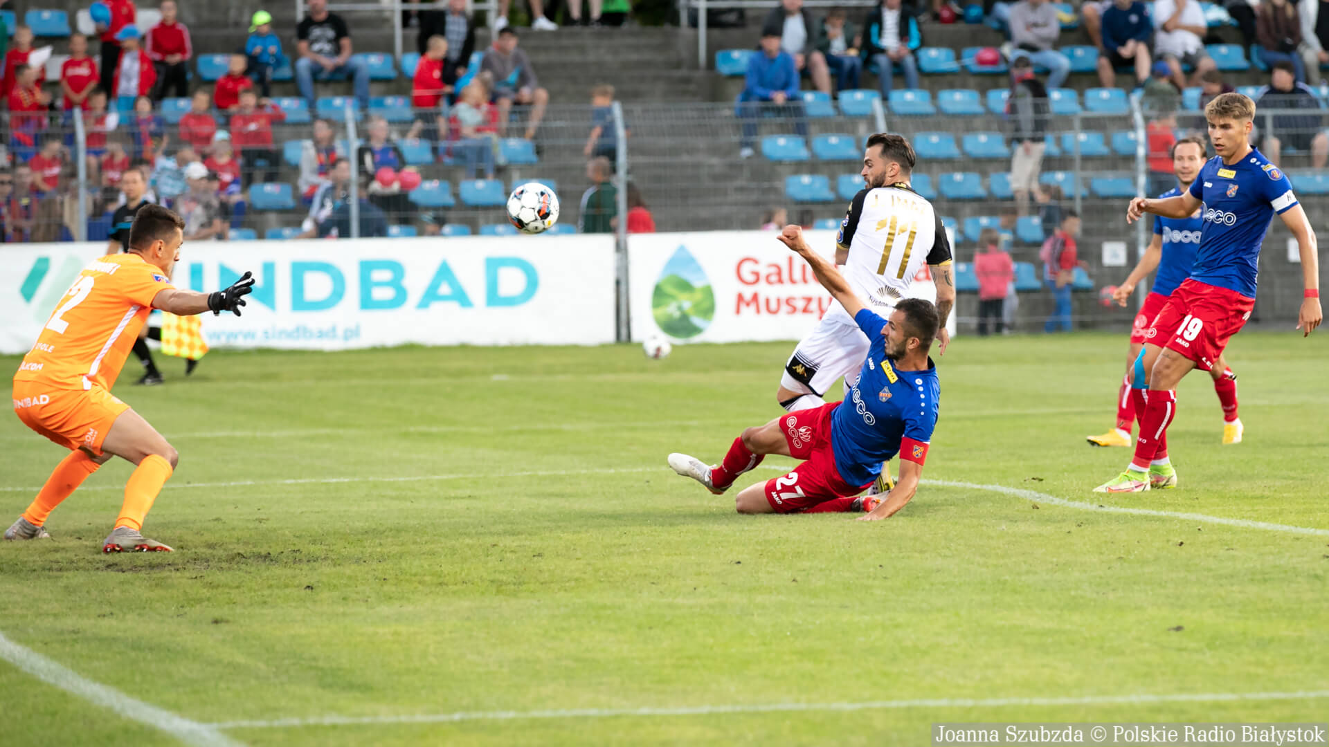 Kilka minut później gospodarze znowu mieli dobrą okazję do zdobycia bramki. Pomylił się Tiru, który chciał zagrać piłkę głową do własnego bramkarza, futbolówkę przejął Guzdek i mało brakowało, a zdobyłby bramkę.