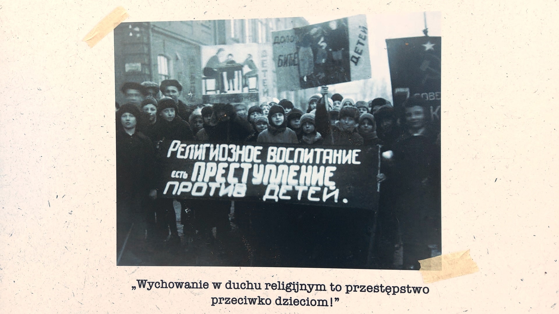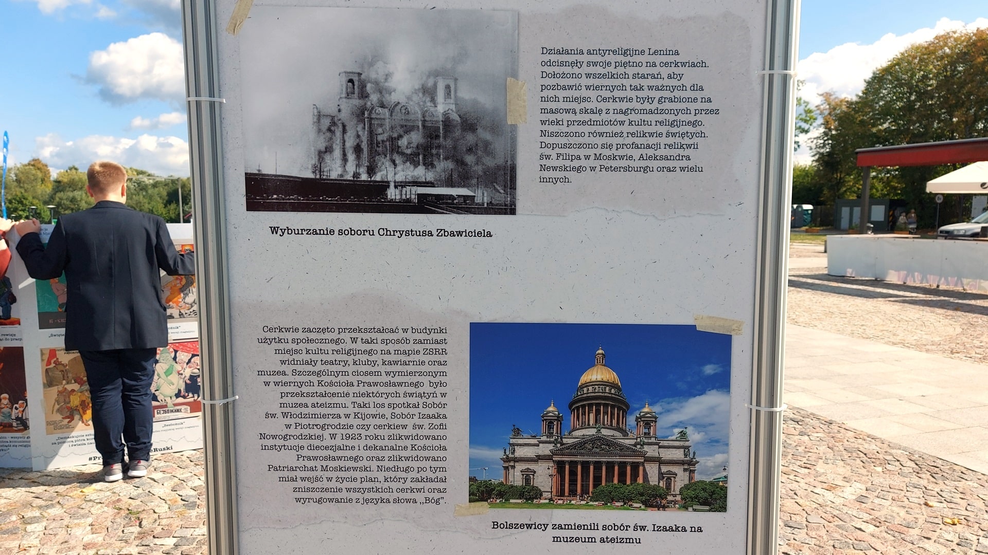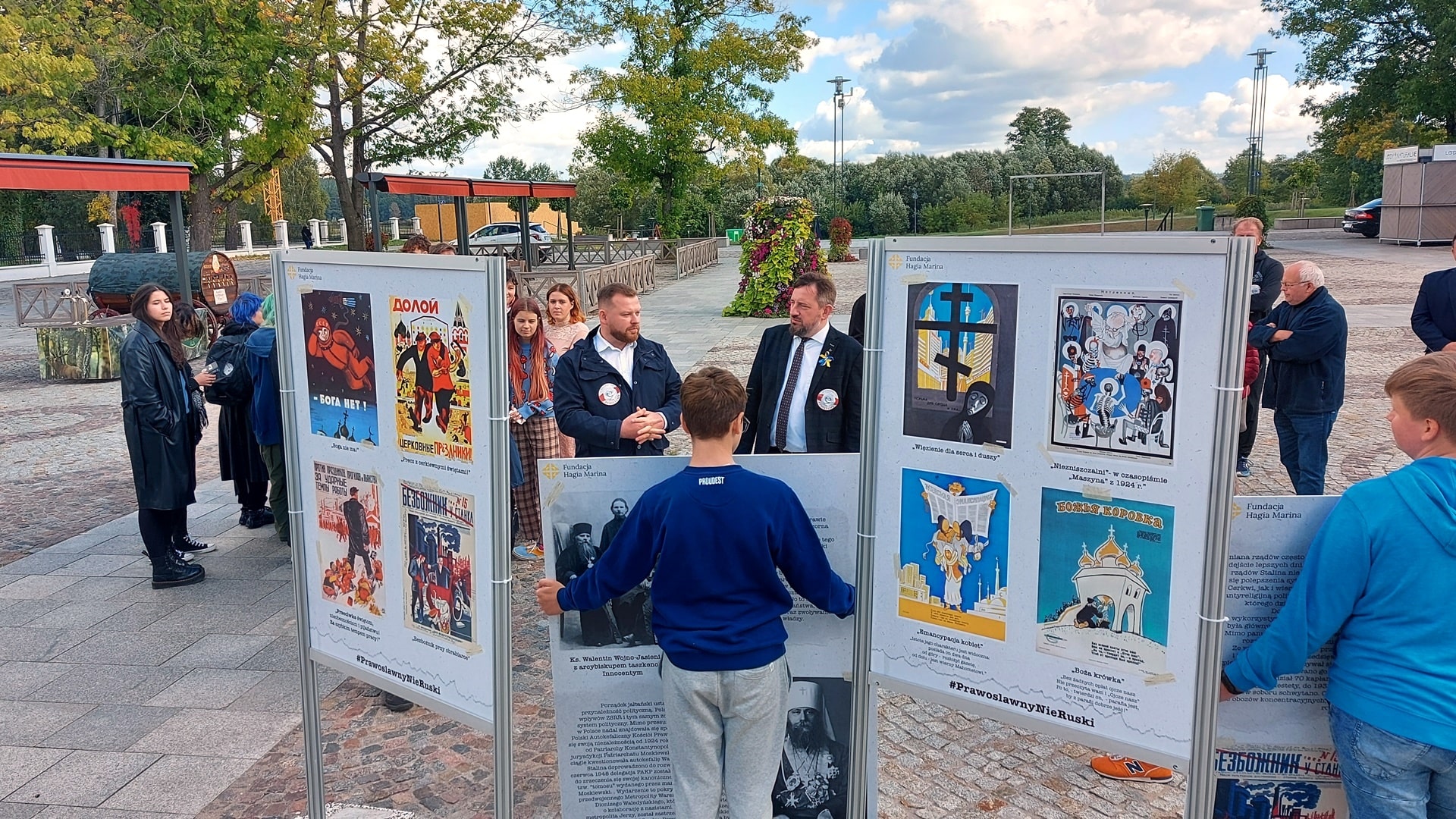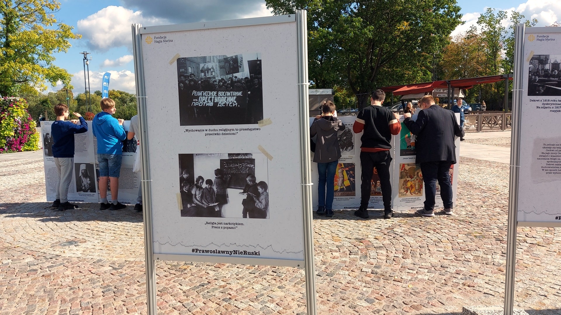 Na wystawie są m.in. antyreligijne propagandowe plakaty i zdjęcia niszczonych cerkwi. W piątek (16.09) na Rynku w Supraślu otwarto wystawę "Zbrodnie komunistyczne wobec Cerkwi Prawosławnej".