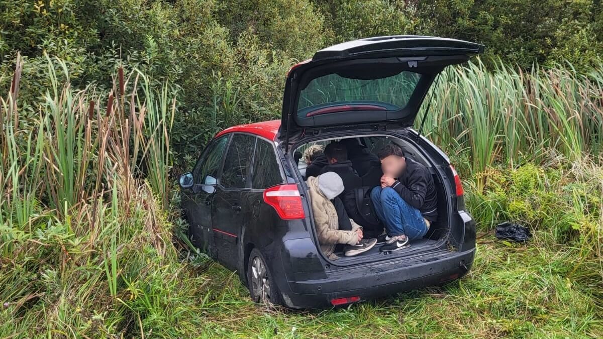 Powiadomione zostały patrole współdziałające oraz jednostki policji; ustawiono blokady. Pierwszy z kierowców na widok blokady zjechał na pobocze i próbował uciekać na piechotę, ale po kilkuset metrach został zatrzymany. Okazało się, że w samochodzie zostawił pięciu nielegalnych imigrantów (przewoził ich na tylnym siedzeniu i w bagażniku) - obywateli Iranu i Turcji.