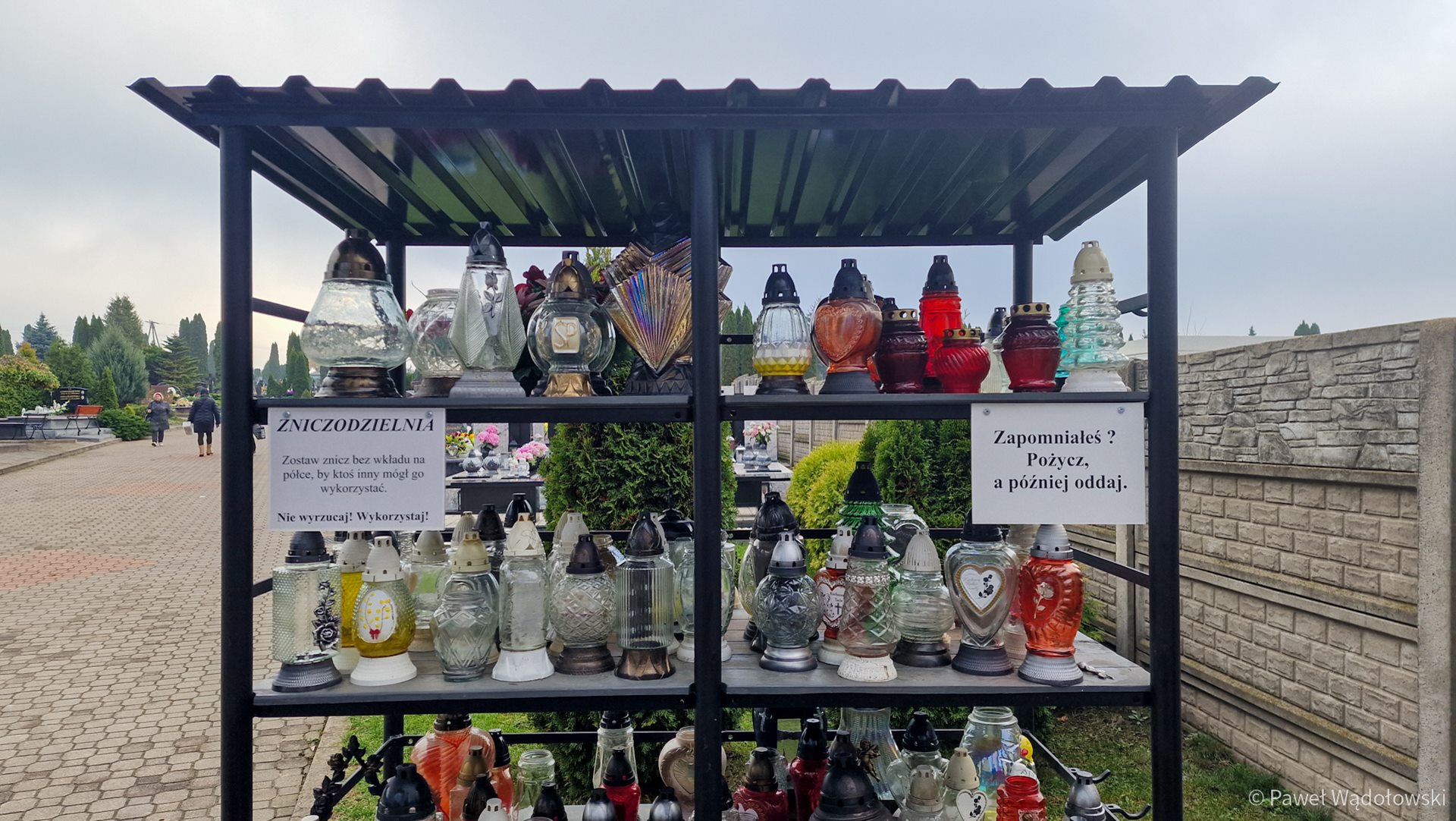Zamiast wyrzucać stary znicz - można się nim podzielić z innymi. Na cmentarzu przy ulicy Przykoszarowej w Łomży działa "Zniczodzielnia".