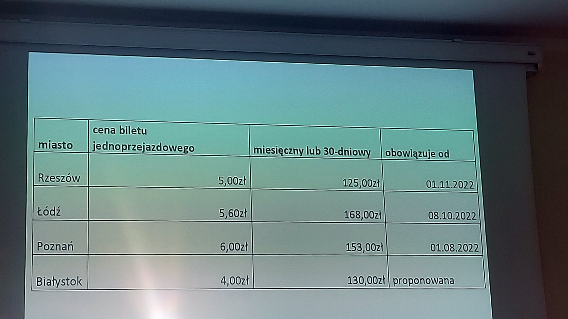 W przypadku okresowych biletów - normalny imienny miesięczny na okaziciela ma kosztować 130 złotych zamiast 100 złotych. To tylko przykłady, bo propozycja zakłada wzrost cen także innych biletów. Jak mówił zastępca prezydenta Białegostoku Zbigniew Nikitorowicz, powodami są m.in. wysoka inflacja i wzrost cen paliw.