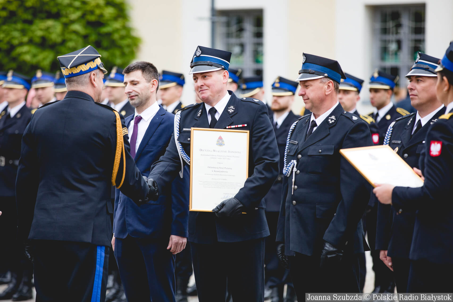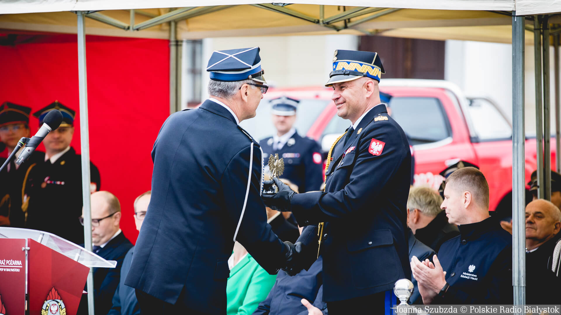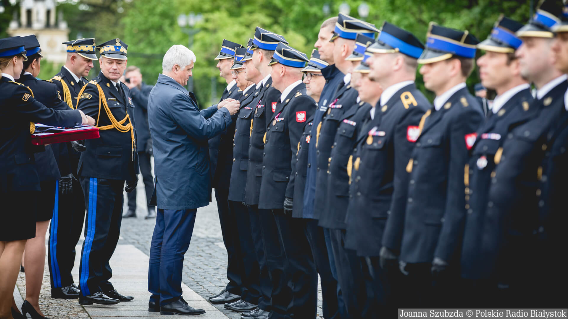 Dziękujemy wszystkim strażakom z województwa podlaskiego za waszą ofiarną służbę. Za to, że niesiecie ratunek ludziom, interweniujecie wtedy, gdy jest jakieś zagrożenie - mówił Dariusz Piontkowski.