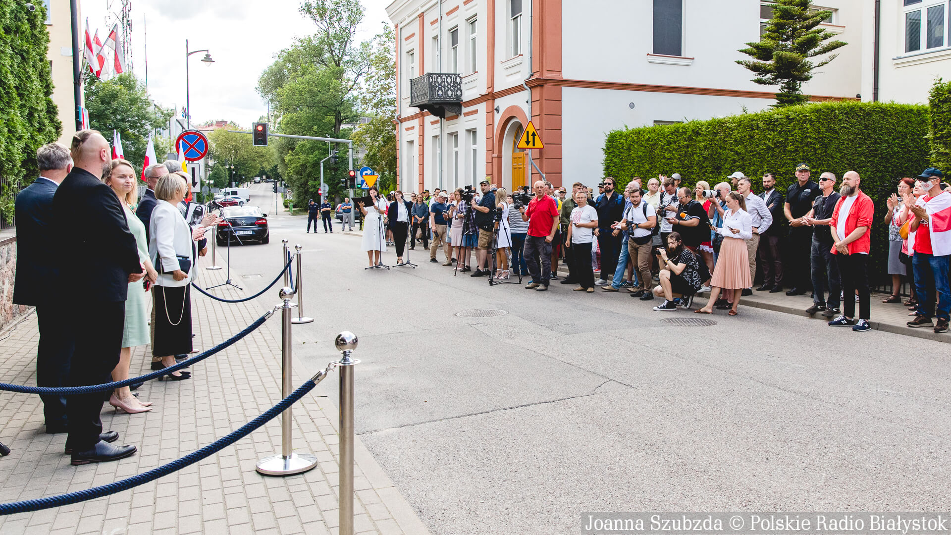 Radio Białystok | Wiadomości | Wiadomości - Były podziękowania i okrzyki "Niech żyje Białoruś". W Białymstoku oficjalnie otwarto Skwer Wolnej Białorusi [zdjęcia]