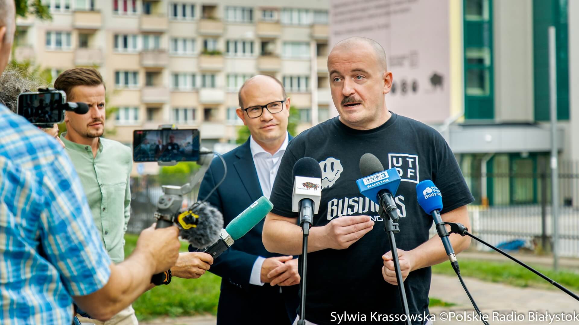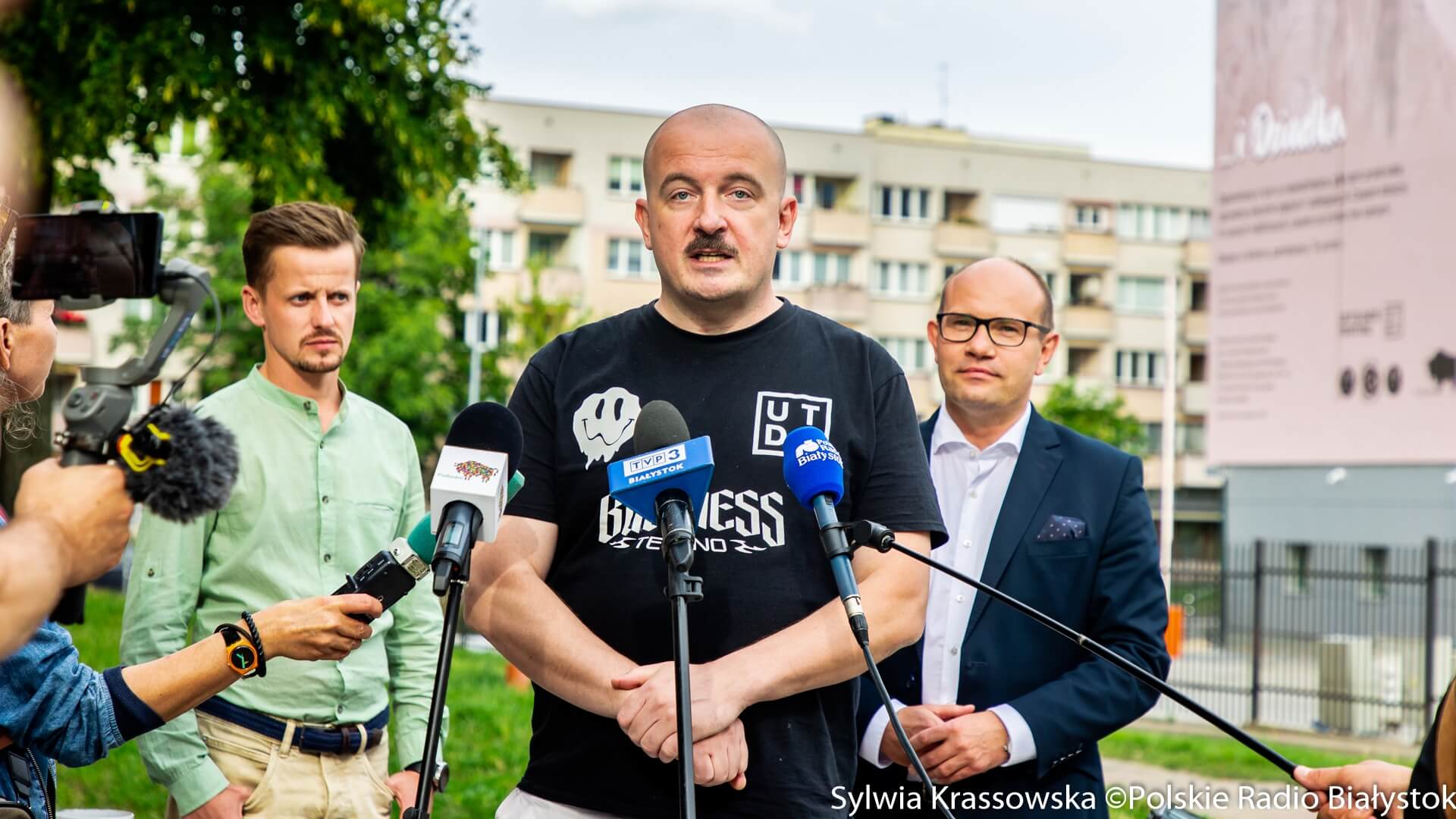 dźwięk do pobraniaMural "Wyślij pocztówkę dla babci" powrócił na ścianę wieżowca przy ul. Skłodowskiej-Curie w Białymstoku - relacja Ryszarda Minko | Pobierz plik.
