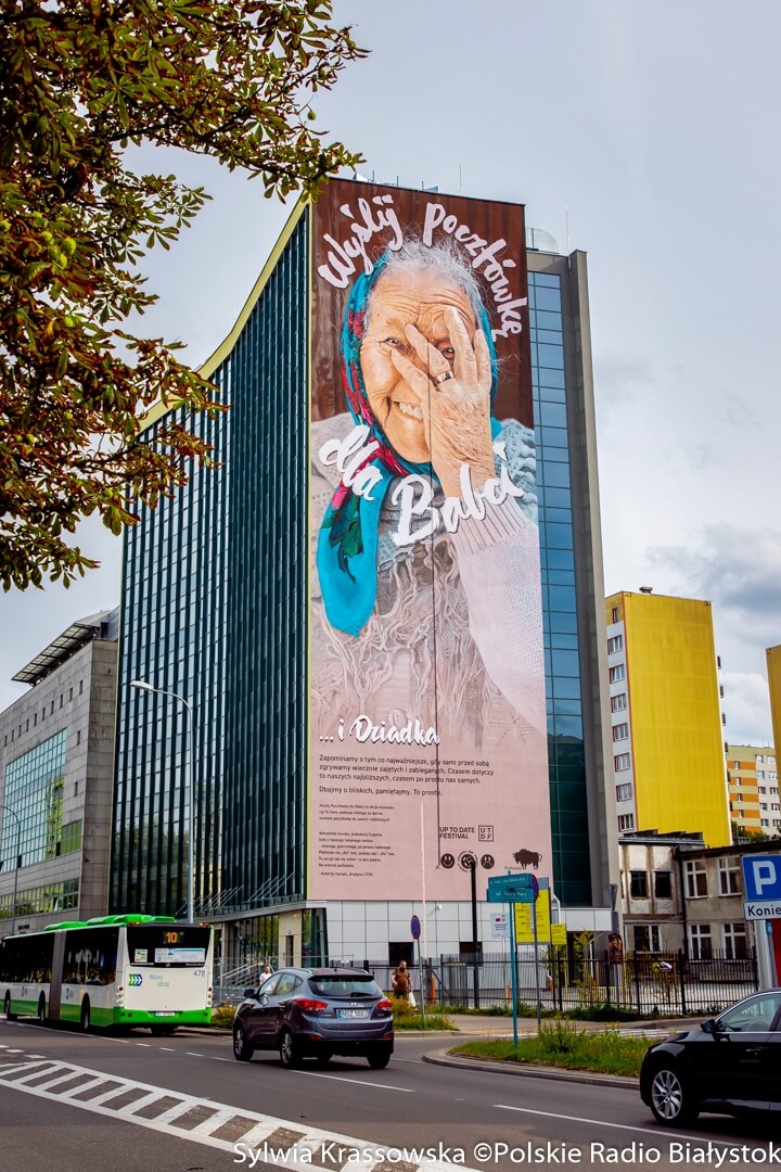 Babcia Eugenia ponownie patrzy swoim ciepłym okiem na Białystok. Na wieżowcu Urzędu Marszałkowskiego Województwa Podlaskiego przy ul. Skłodowskiej-Curie ponownie odsłonięto mural „Wyślij pocztówkę dla babci”.