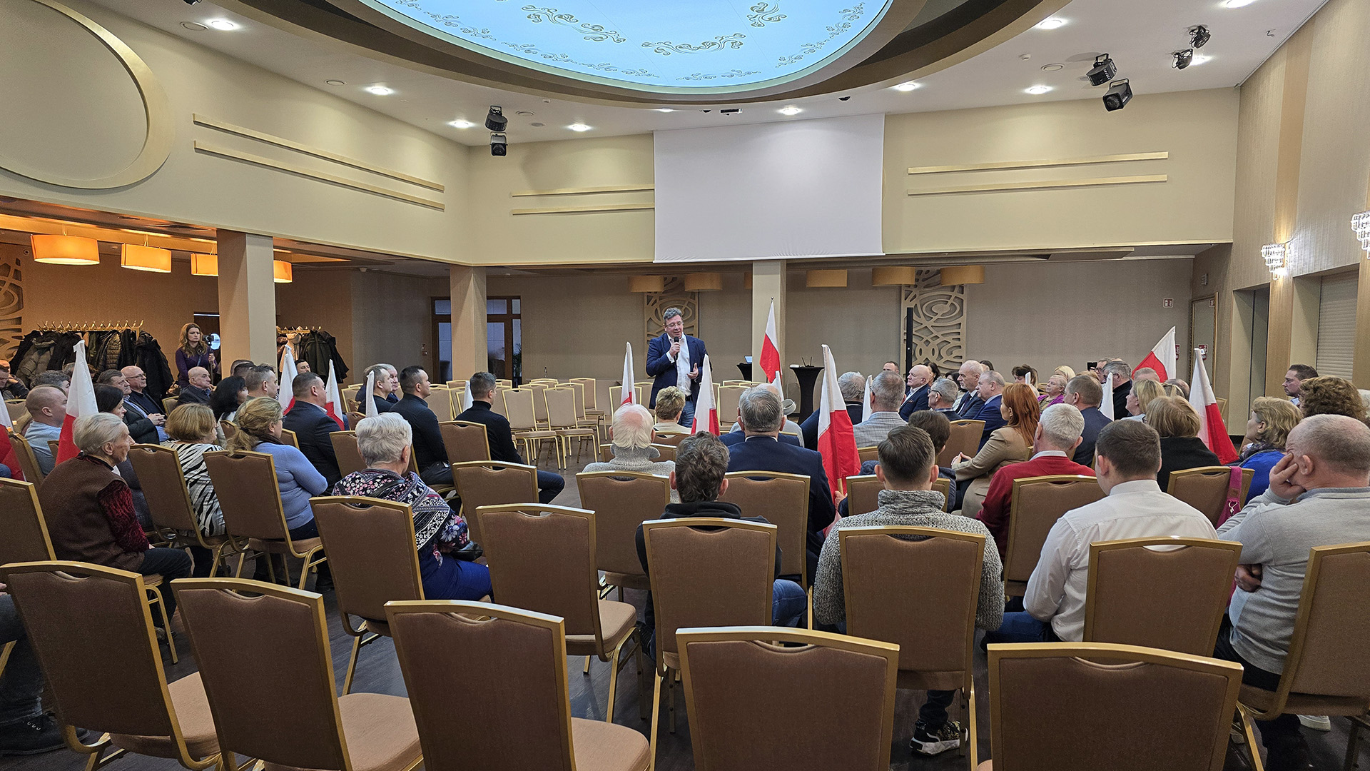 Spotykamy się w różnych częściach kraju. Spotykają się parlamentarzyści Prawa i Sprawiedliwości i Suwerennej Polski. Widzę, że nastroje są dobre przed wyborami, na sali jest wielu samorządowców. Do boju, można powiedzieć. Będziemy rozmawiali na temat aktualnej sytuacji w kraju, która nie napawa optymizmem. Demokracja jest niszczona, nie ma co do tego żadnych wątpliwości. Ostatnie tygodnie pokazują, że te wybory zbliżające się: samorządowe, a potem do europarlamentu, będą bardzo ważnymi - mówi Michał Wójcik.