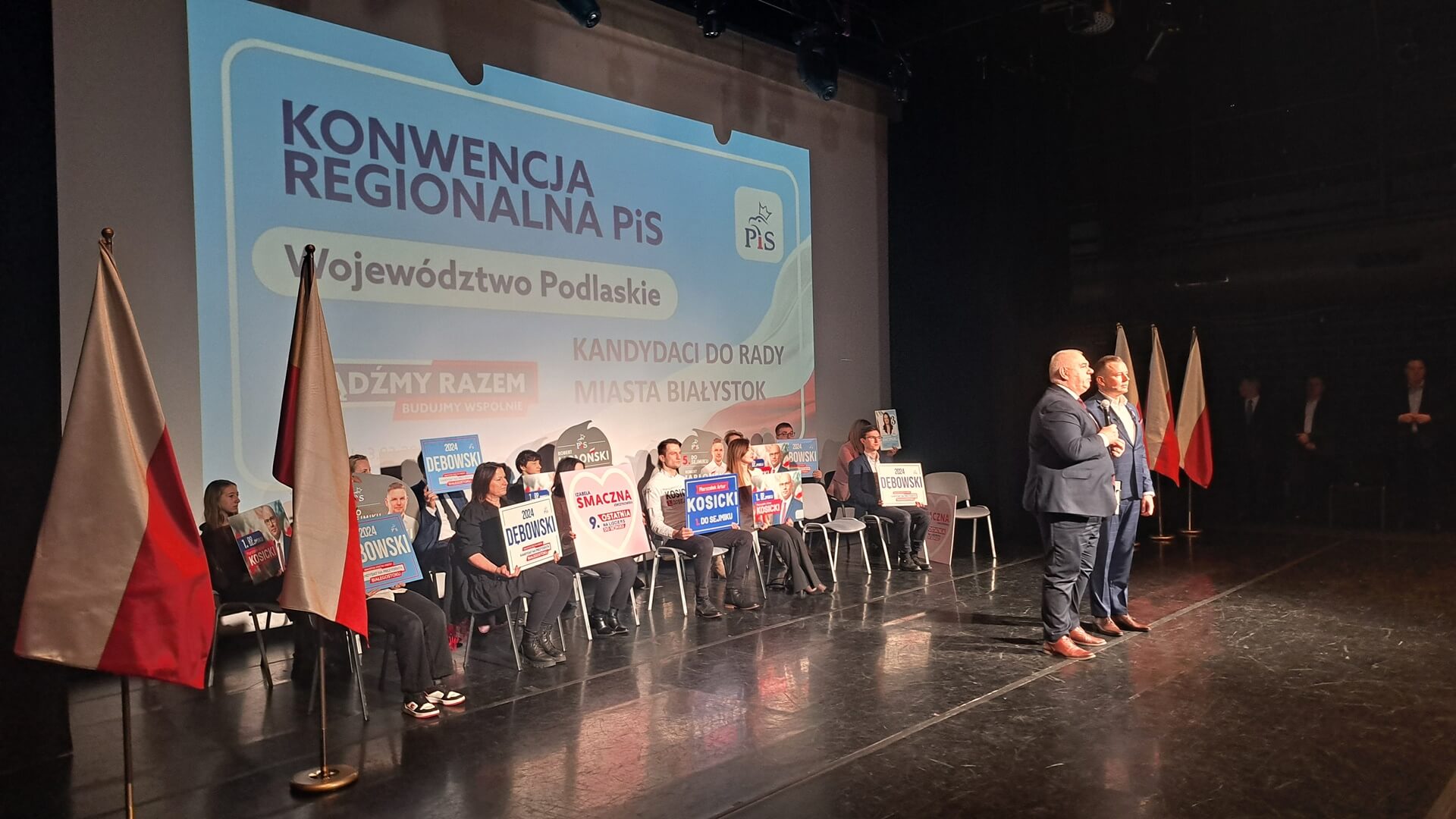 Prawo i Sprawiedliwość zaprezentowało też kandydatów do sejmiku województwa podlaskiego. Liderami są: marszałek Artur Kosicki (okręg nr 1 obejmujący Białystok), radny Paweł Wnukowski (okręg nr 2 obejmujący Suwałki i powiaty: augustowski, sejneński, suwalski, sokólski i moniecki), wicemarszałek Marek Olbryś (okręg nr 3 obejmujący Łomżę i powiaty: grajewski, kolneński, łomżyński i zambrowski) i senator poprzedniej kadencji Mariusz Gromko (okręg nr 4 obejmujący powiaty: bielski, siemiatycki, wysokomazowiecki, hajnowski i białostocki).