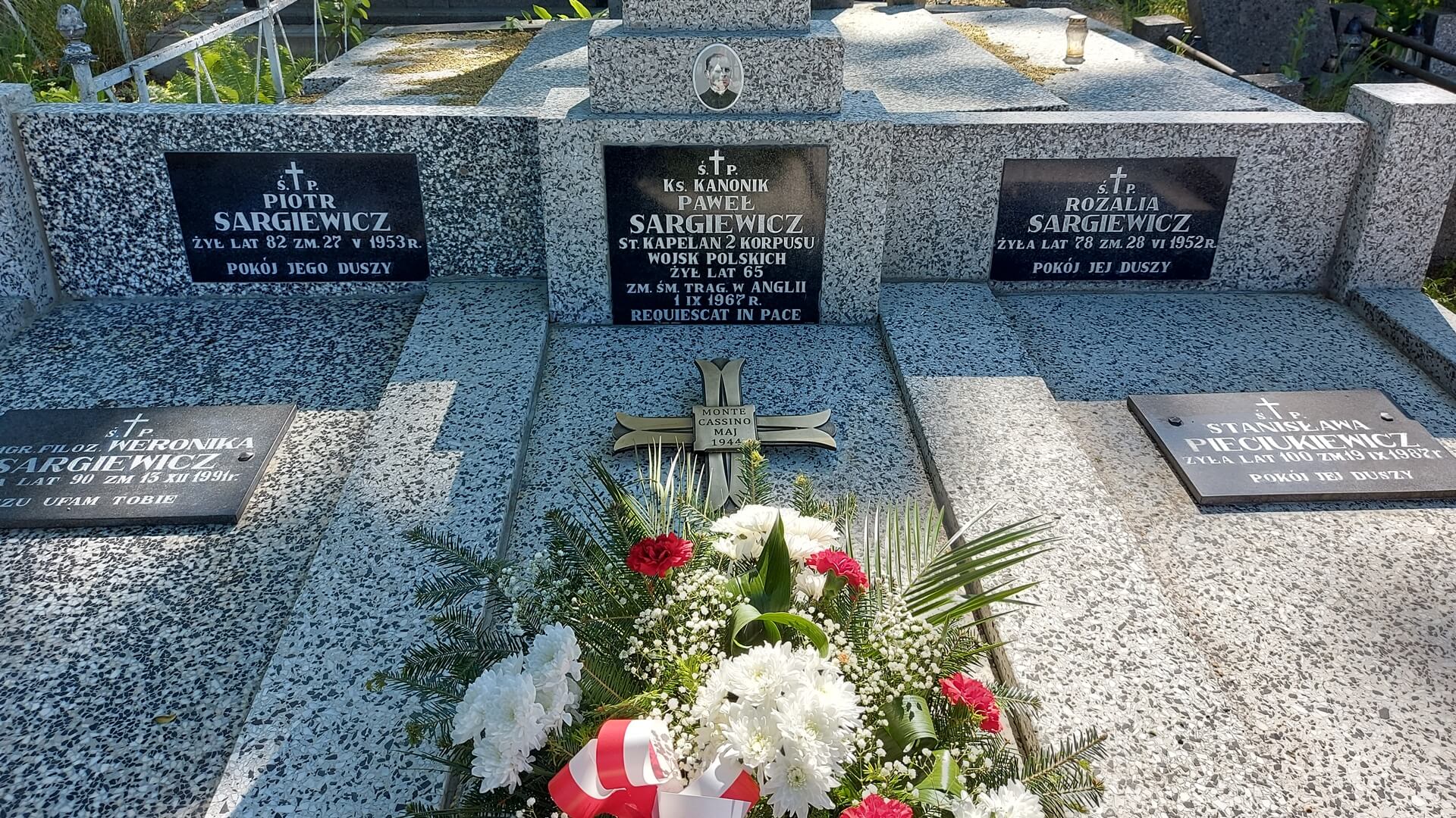 Specjalna tabliczka z napisem "GRÓB WETERANA" zawisła na mogile ks. Pawła Sargiewicza na Cmentarzu Farnym w Białymstoku. To inicjatywa białostockiego oddziału IPN w związku z 80. rocznicą walk o Monte Cassino.