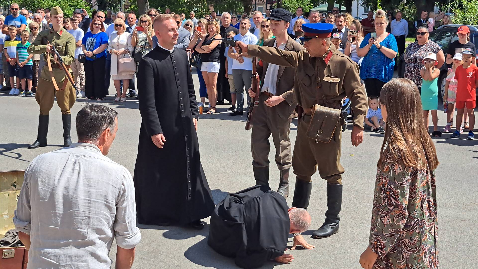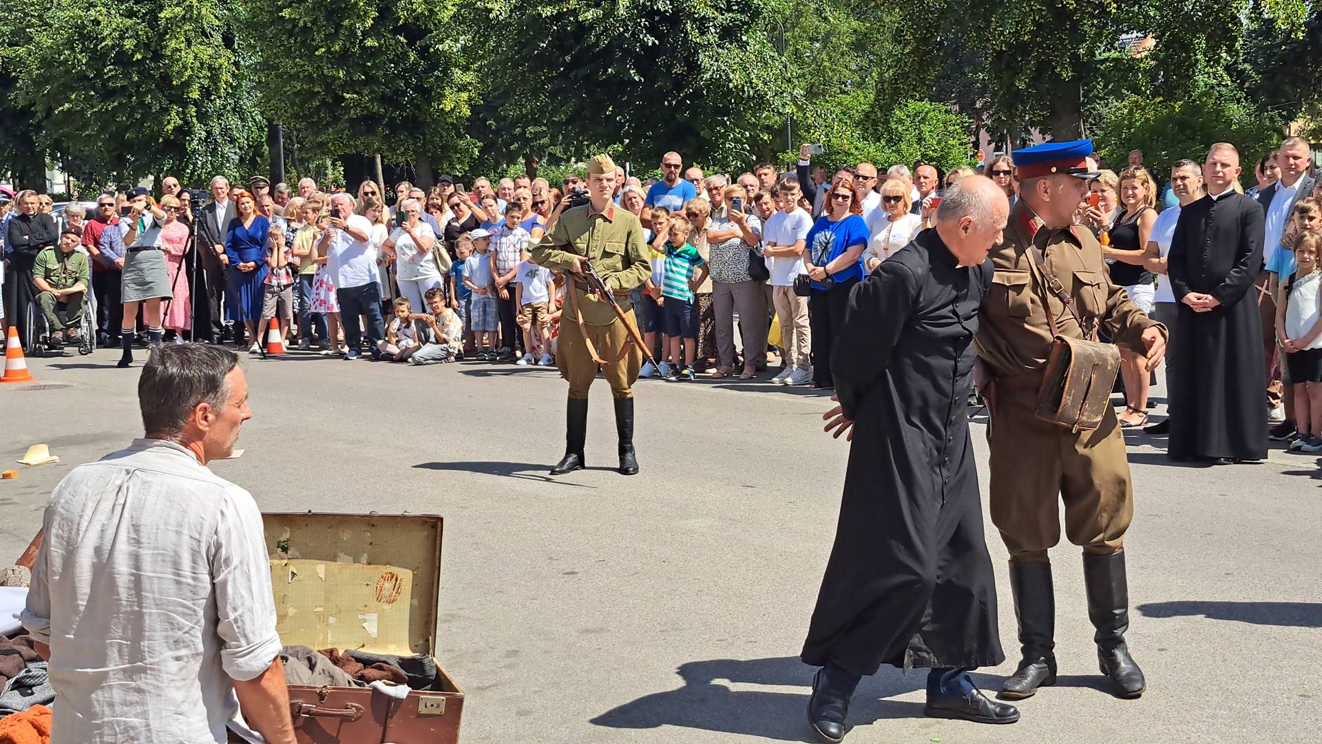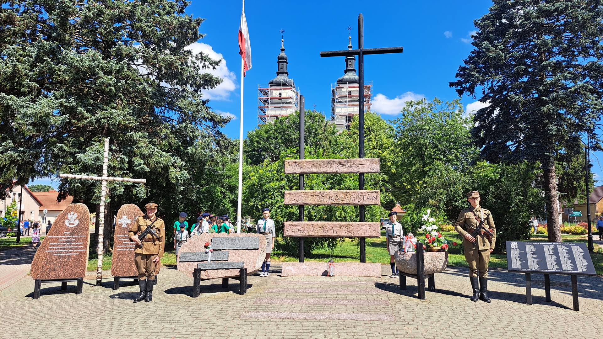 Pokaz wydarzeń sprzed lat poprzedziła msza w intencji ofiar sybiru i ich rodzin oraz złożenie kwiatów przed pomnikiem w centralnym miejscu placu przed kościołem.