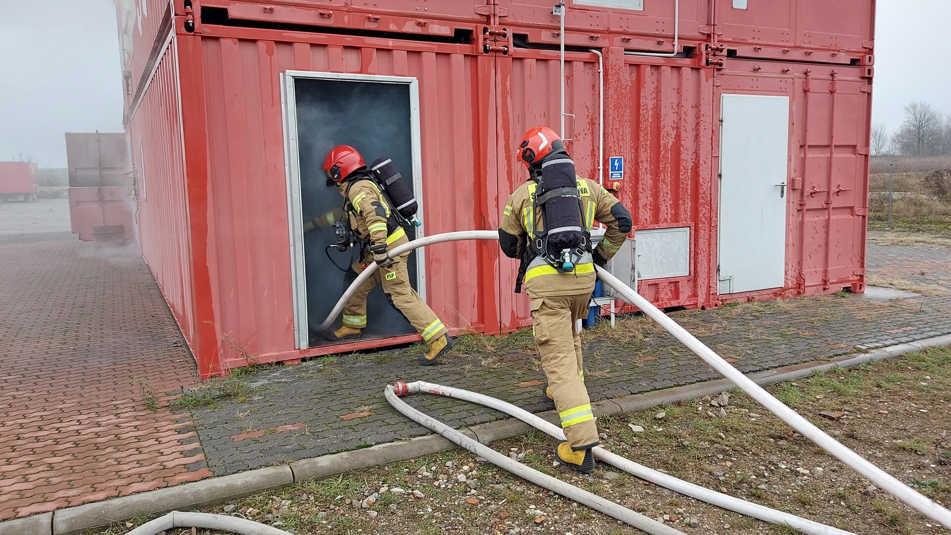 Kolejne ćwiczenia odbyły się w Łapach, gdzie strażacy szkolili umiejętność odnajdywania i wynoszenia osoby poszkodowanej z zadymionego i ciemnego pomieszczenia.