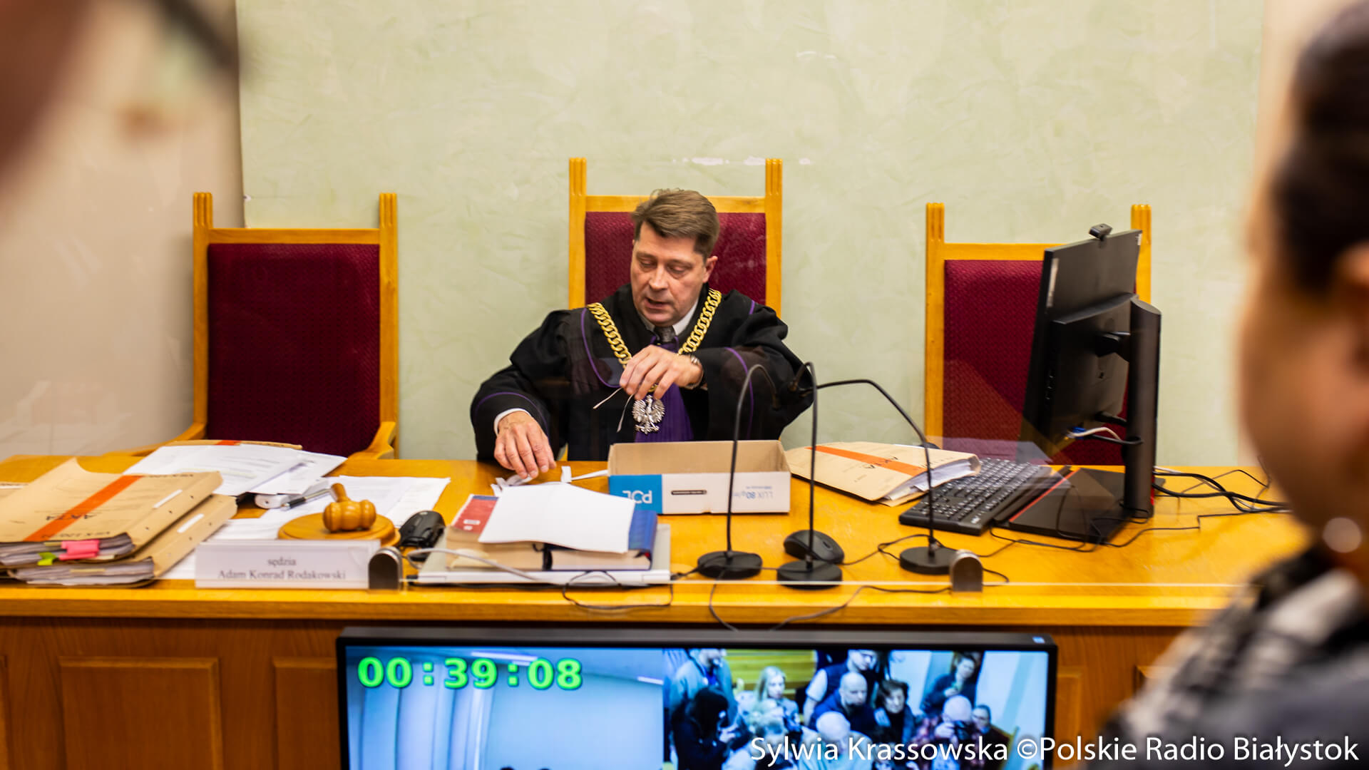 Zanim sąd otworzył przewód sądowy, najpierw przeprowadził losowanie przedstawicieli mediów, którzy mogą przebywać na sali rozpraw. Sąd uznał, że ze względu na duże zainteresowanie dziennikarzy prasy, radia, telewizji i mediów internetowych i rozmiary sali, nie wszyscy przedstawiciele ok. 20 redakcji mogliby się na niej zmieścić.