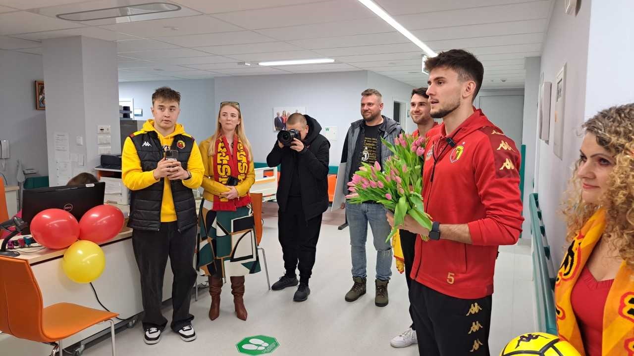 Bramkarz żółto-czerwonych Sławomir Abramowicz, pomocnik Leon Flach i obrońca Cezary Polak odwiedzili Uniwersyteckie Centrum Onkologii. Przyszli z kwiatami i biletami na mecz.