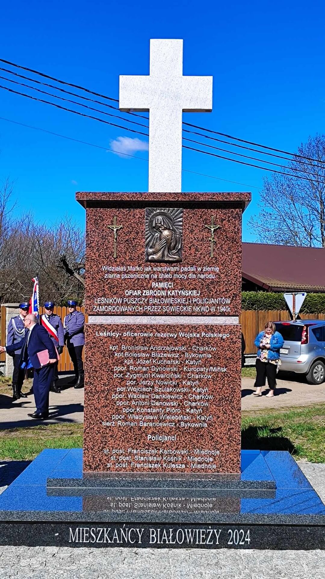 Białowieża ma od czwartku (3.04) Pomnik Pamięci Ofiar Zbrodni Katyńskiej. Wśród 22 tysięcy ofiar z Katynia, Charkowa, Miednoje, Bykowni i innych miejsc znalazło się dwunastu leśników z Puszczy Białowieskiej, którzy walczyli w obronie ojczyzny oraz trzech policjantów, którzy okresowo pełnili służbę w Białowieży.