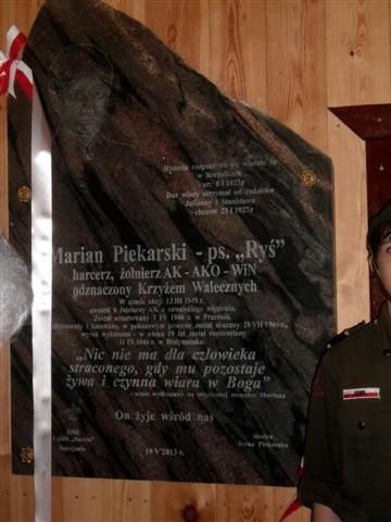Jest bohaterem harcerzy i młodego pokolenia Suwałk. Zasłynął z brawurowej akcji uwolnienia z suwalskiego więzienia 6 żołnierzy Armii Krajowej. W niedzielę odbędzie się uroczyste odsłonięcie tablicy poświęconej pamięci Mariana Piekarskiego, pseudonim „Ryś”.