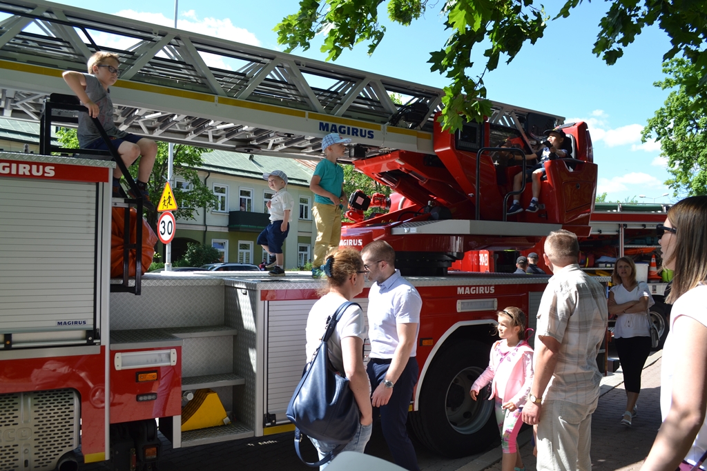 W sąsiedztwie Parku Konstytucji 3 Maja strażacy zaprezentowali wozy strażackie i wyposażenie.