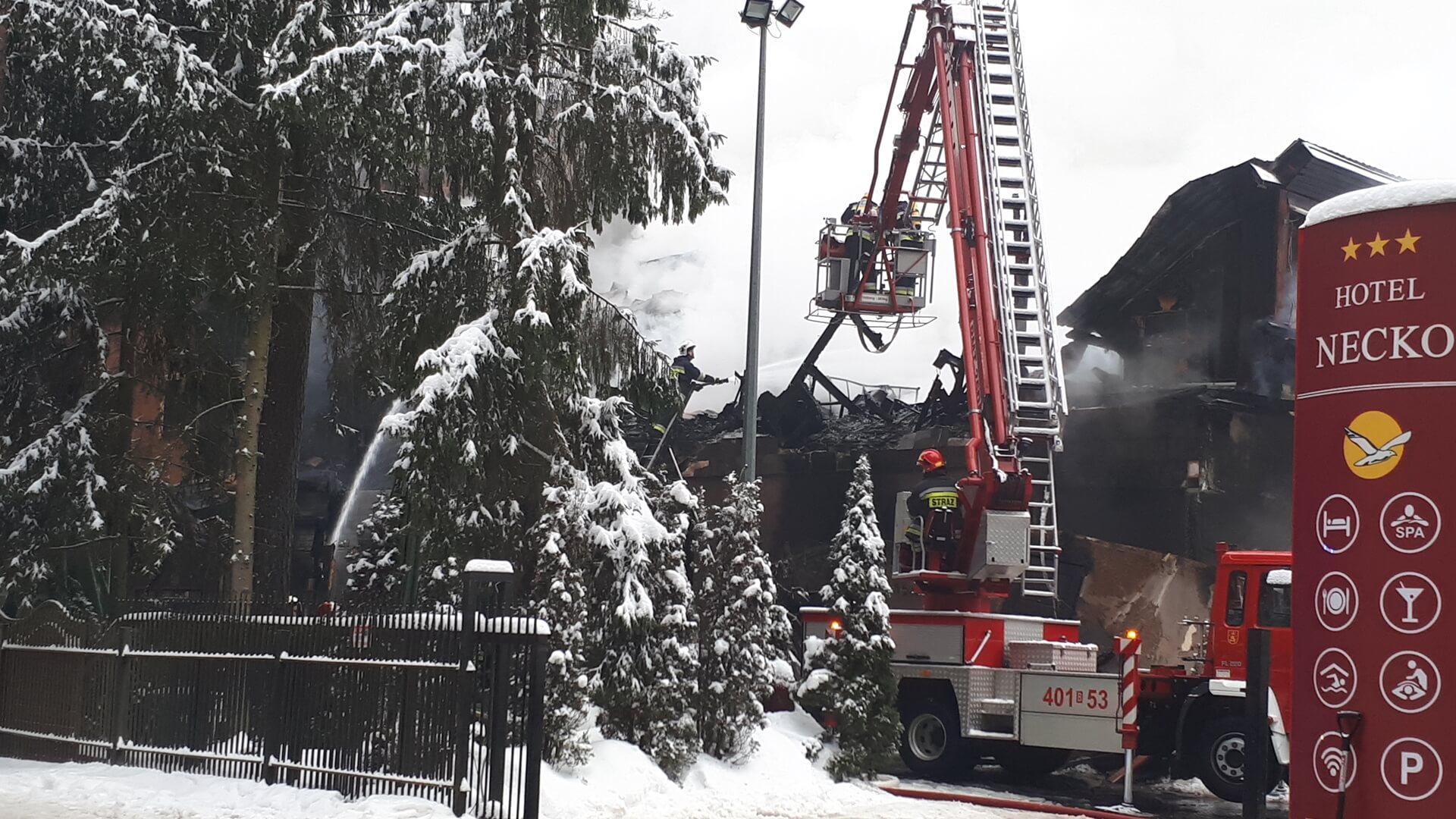 Strażacy ratowali dobudowaną część obiektu. Ogień w hotelu pojawił się w poniedziałek (28.01) przed 23:00 na poddaszu. Na szczęście w budynku nie było gości, a pracownicy hotelu sami go opuścili jeszcze przed przyjazdem straży. W akcji gaszenia pożaru brało udział 20 zastępów.